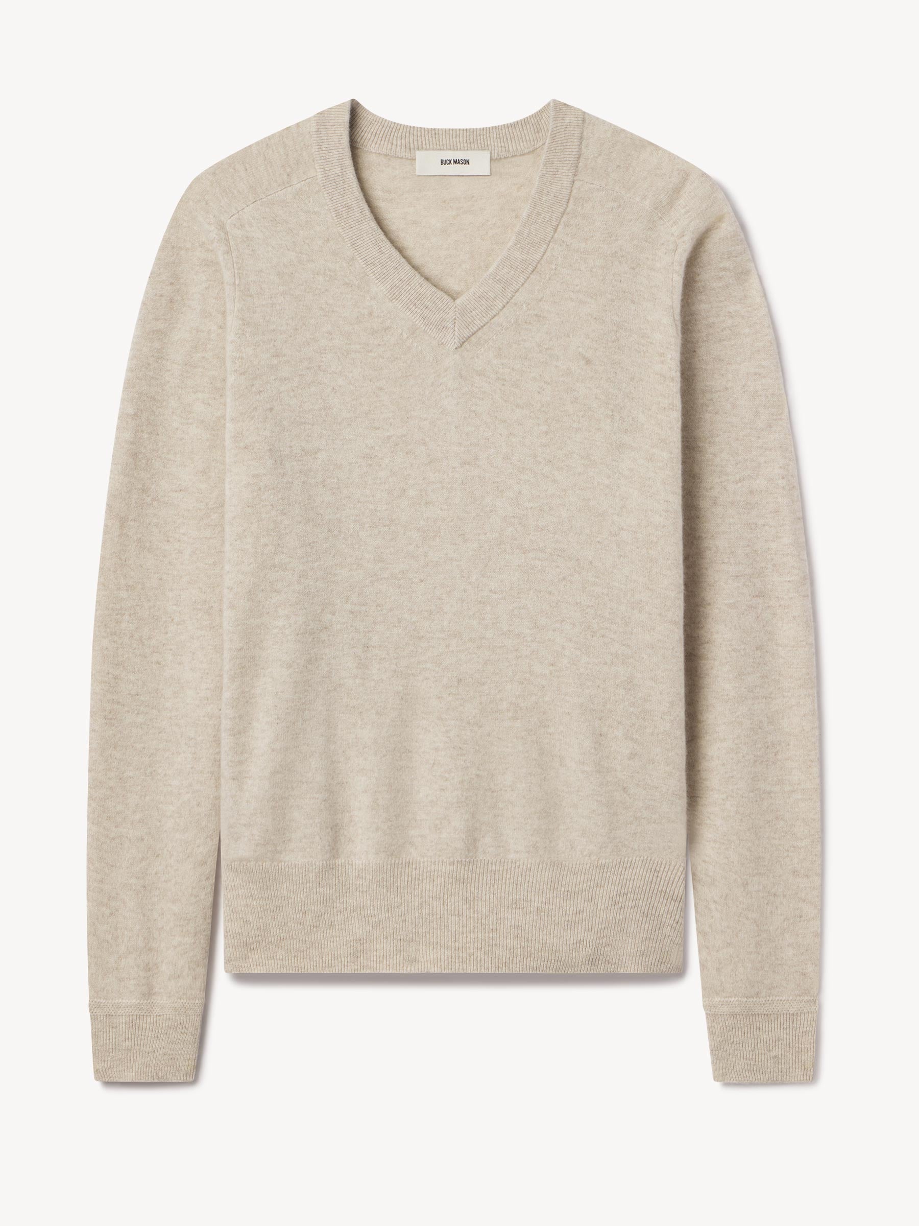 Classic fit long sleeve V-neck sweater in a 12 gauge jersey knit from yarn-dyed long staple cashmere. Fully-fashioned and finished with ribbing at the cuffs, collar, and hem. Constructed with hand-linked seams for durability.