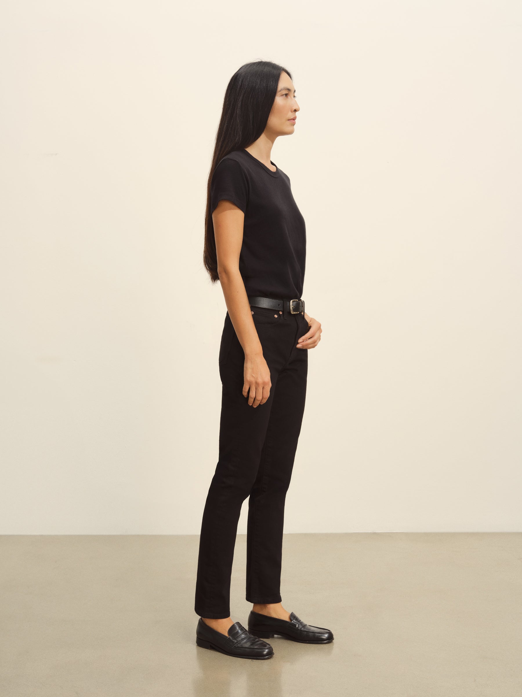 Designed for everyday wear or more polished styling, these mid-rise, slim-leg, ankle-length jeans are the definition of versatility. They’re cut from midweight 12 oz denim—with a hint of stretch for all-day comfort—and are finished with classic details like copper rivets, a metal tack button, and a zipper fly. Garment washed and dyed for a lived-in feel.