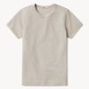 Slim fit crewneck tee cut from a supersoft 130 GSM blend of bamboo, cotton, and wool. Features a straight hem, a self bound neck, and raised armholes that hug the contours of the shoulders. Garment washed for a lived-in feel.
