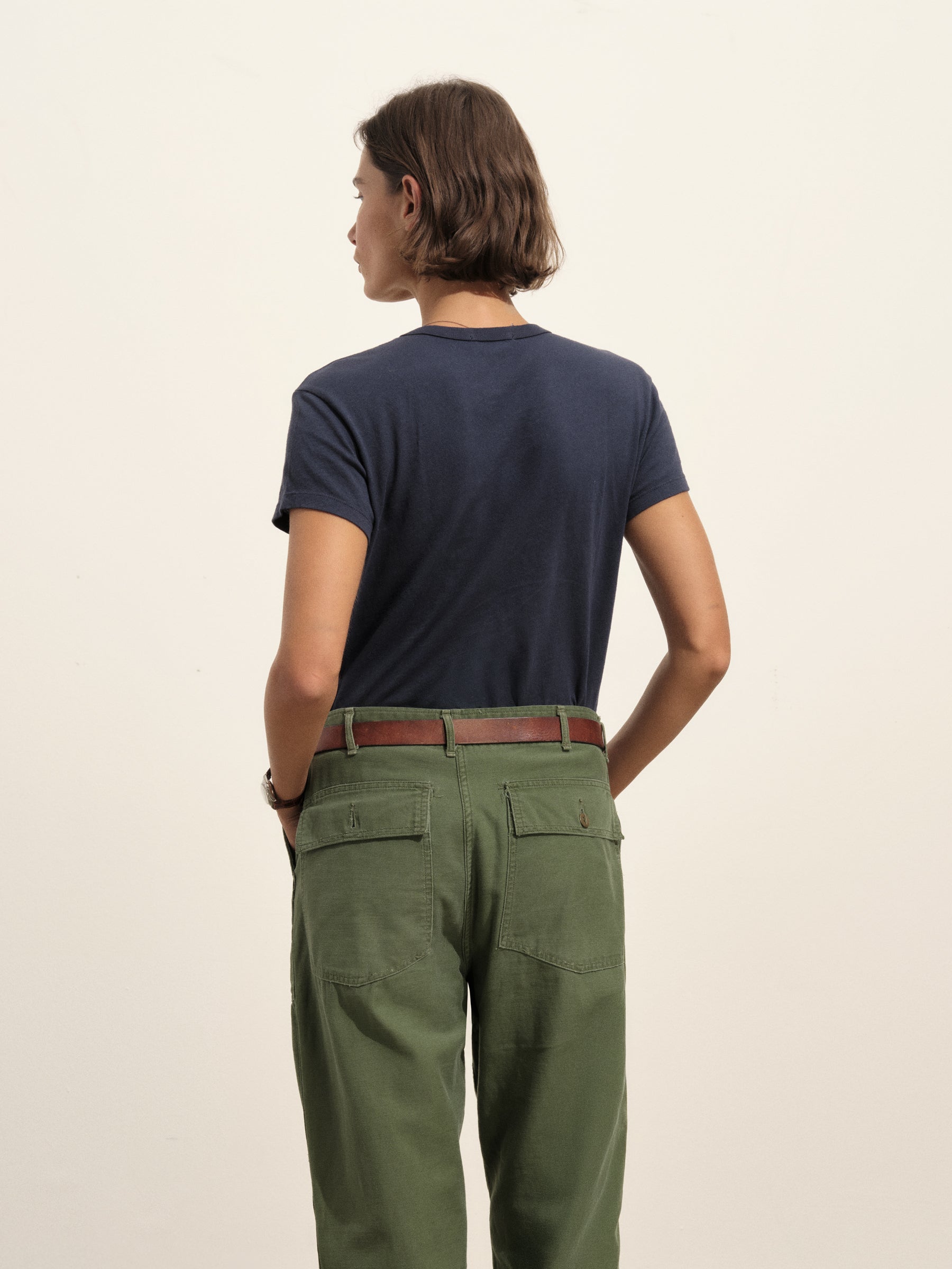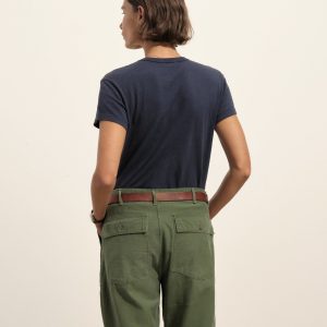 Slim fit crewneck tee cut from a supersoft 130 GSM blend of bamboo, cotton, and wool. Features a straight hem, a self bound neck, and raised armholes that hug the contours of the shoulders. Garment washed for a lived-in feel.