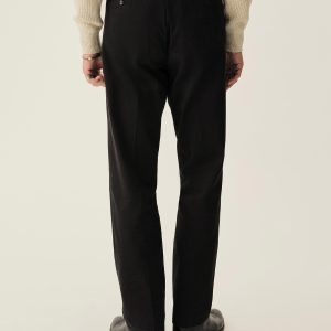 The El Camino Pant is a western-inspired trouser crafted from brushed Japanese cotton twill, built with 1960s-era frogmouth front pockets, waist tab closures, and a split waistband. Modeled after polished rodeo styles, the leg runs slim and straight from a mid-high rise down to a boot-ready opening.