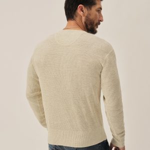 A standard fit, vintage-inspired thermal stitch henley crafted from slubby, yarn-dyed cotton. Featuring variegated rib finishes at the cuffs and bottom hem, and coverstitching along the seams. Finished with a three button shell closure.
