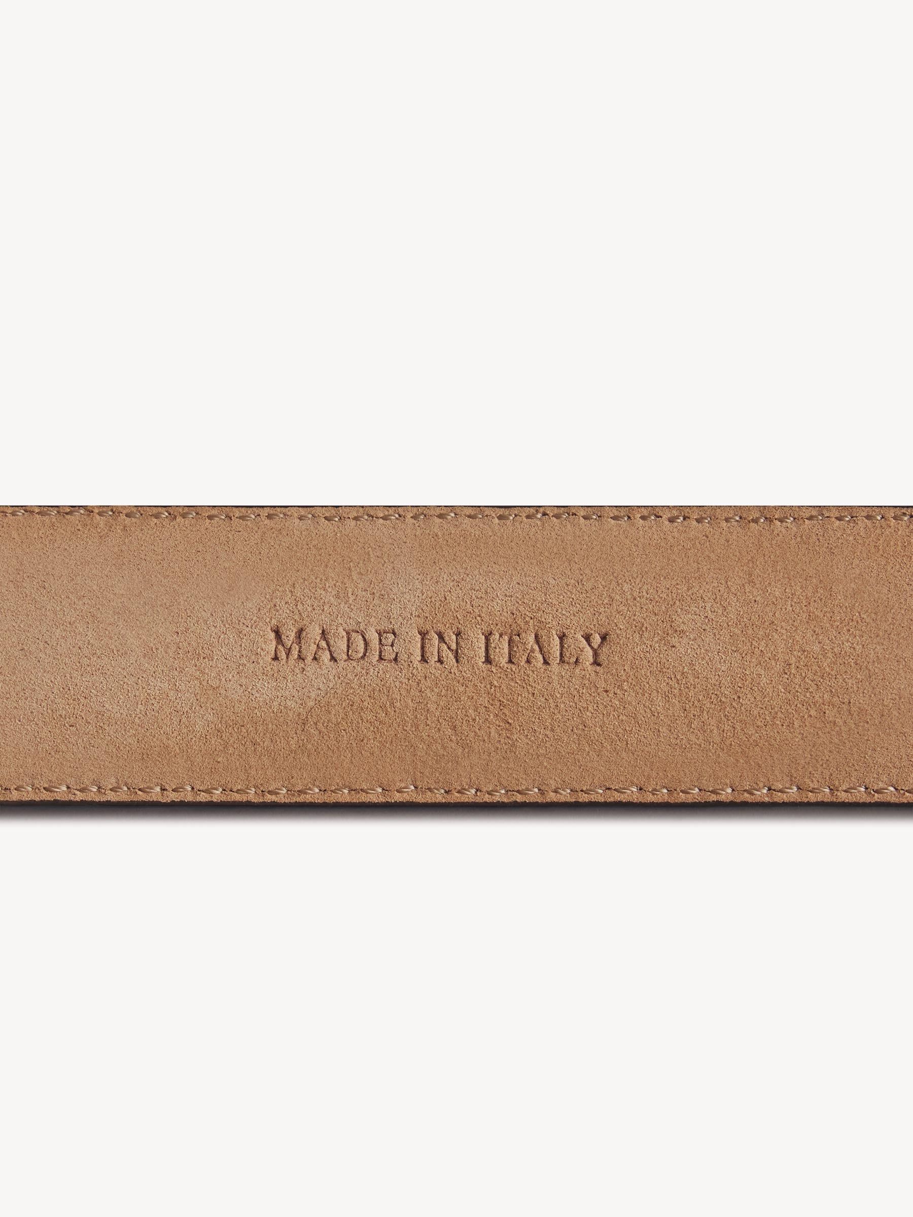 A classic dress belt made from 100% vegetable-tanned steerhide, padded with a soft nubuck lining. Finished with a solid metal, hand-burnished chrome buckle that will develop a rich patina over time. Perfect for dressing up denim or pairing with tailored looks. 1″ wide. Standard fit — take your usual belt size.