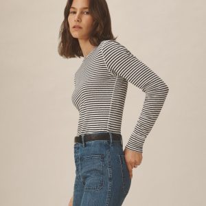 Slim fit crewneck sweater in a 24″” length, elevated in a 14 gauge variegated rib knit from a blend of merino wool, silk, and cashmere. Luxe, easy, and ideal for layering. Constructed with self-starting hem and sleeve trim and fashioning at the neckline and back shoulder for durability.