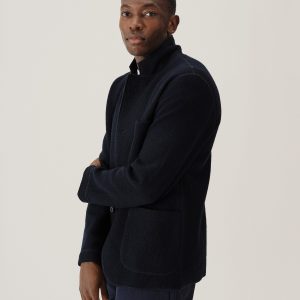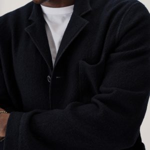 Classic fit chore coat with a slimmer cut through the arms and room in the torso for layering. This 340 GSM felted merino wool has been twice boiled for improved insulation and durability. Details include three patch pockets, real horn buttons, and a notch collar. Constructed with hand-sewn facings and cover-stitching throughout.