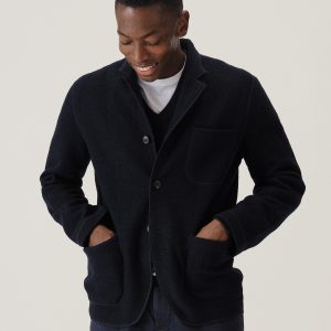 Classic fit chore coat with a slimmer cut through the arms and room in the torso for layering. This 340 GSM felted merino wool has been twice boiled for improved insulation and durability. Details include three patch pockets, real horn buttons, and a notch collar. Constructed with hand-sewn facings and cover-stitching throughout.
