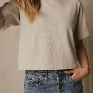 Cut from a heavyweight 310 GSM cotton, this slightly oversized, boxy crewneck tee has a straight hemline that hits right at your natural waist. Double-washed for a soft, smooth texture and consistent fit.