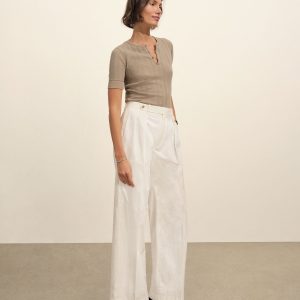 Military-inspired short sleeve henley, crafted from a superfine blend of new and recycled cotton with a subtle, textured rib. Featuring a three-button loop placket and sleeve cuffs. Finished with mother of pearl buttons and garment washed for a lived-in feel.
