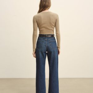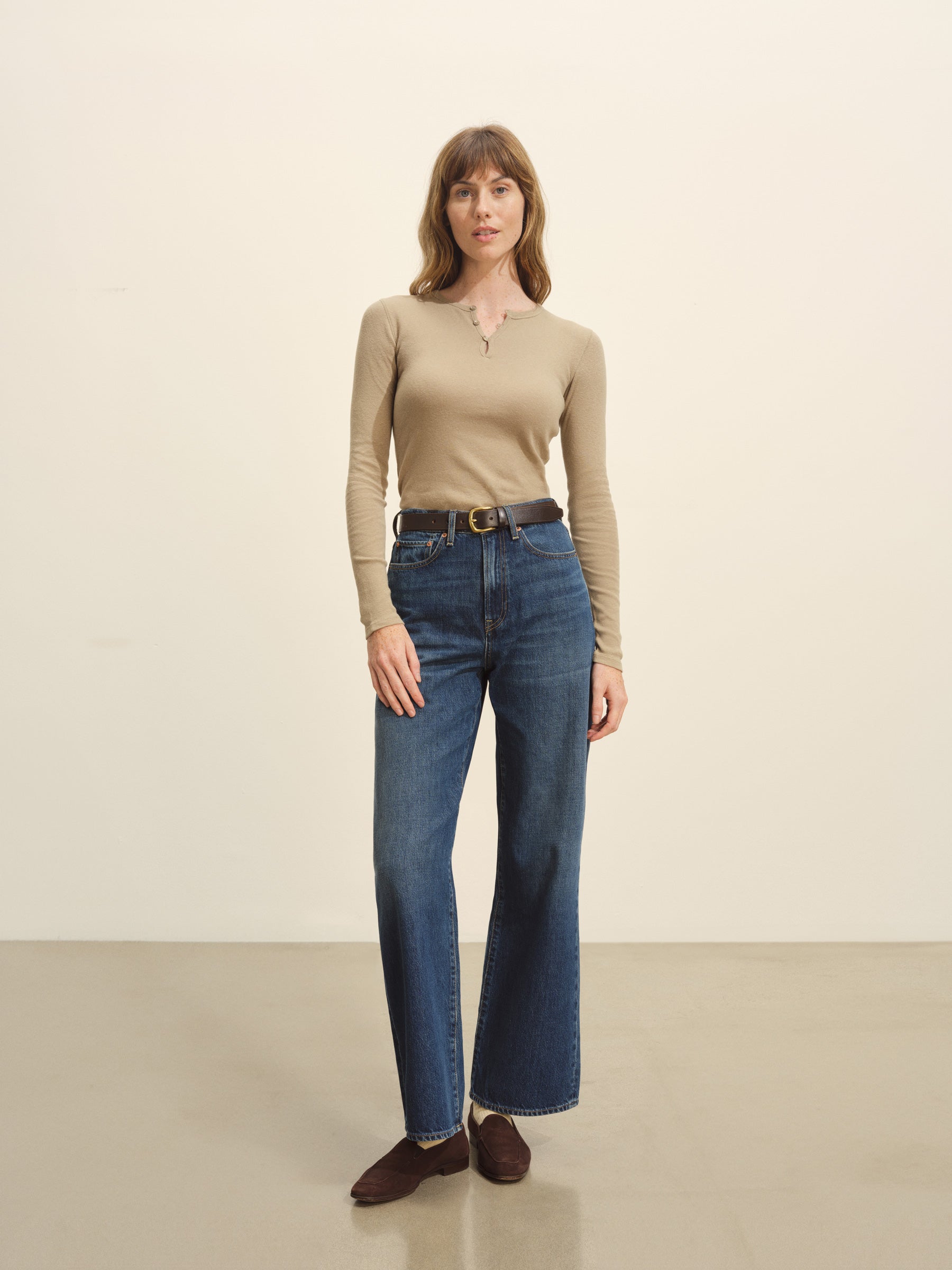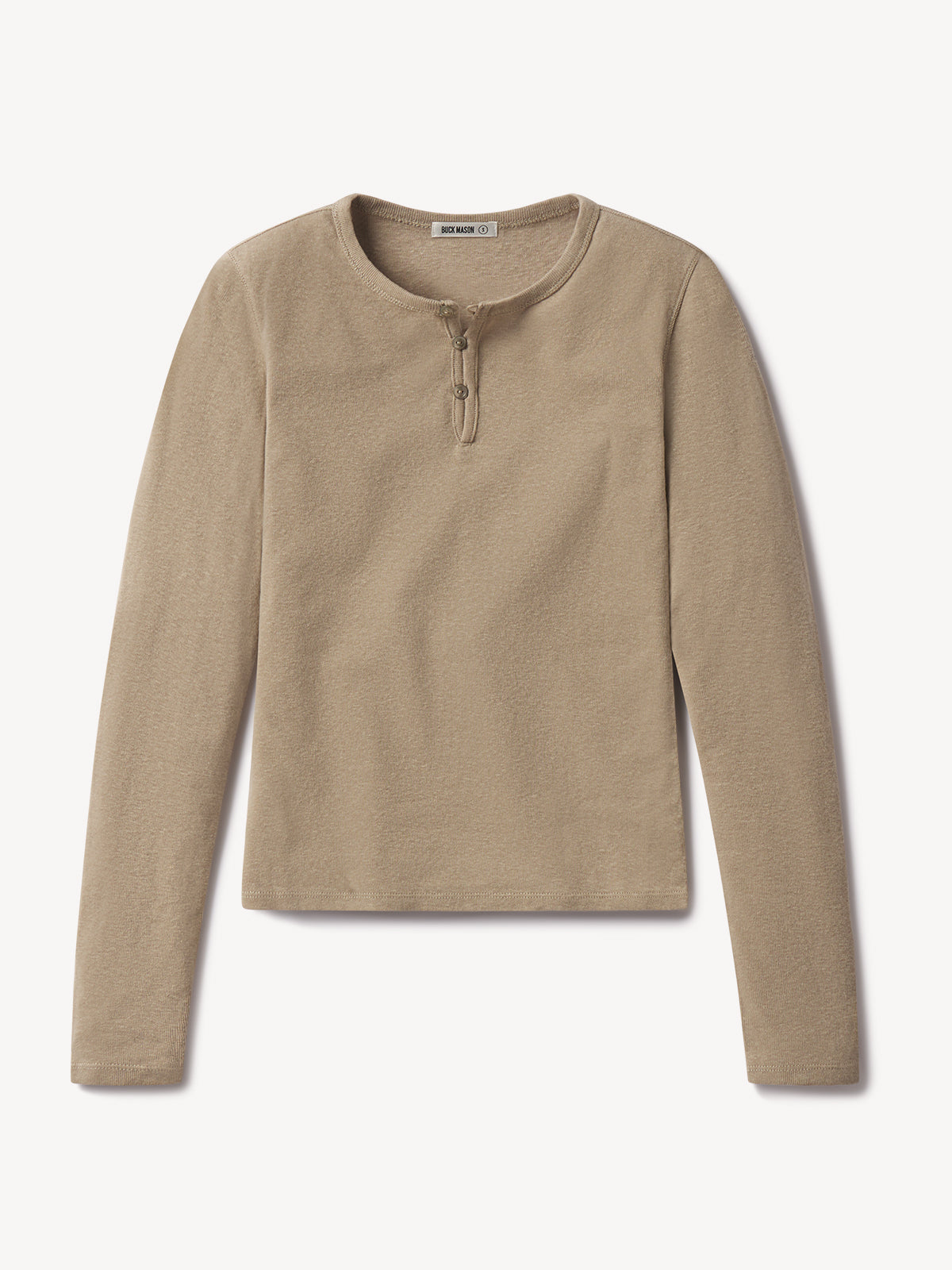 “Slim fit long sleeve henley cut from extra fine 170 GSM cotton with recycled content that holds its shape. Details include a a three-button loop placket with corozo fish eye buttons, and straight, clean finished hem and cuffs. Garment washed for a lived-in feel.