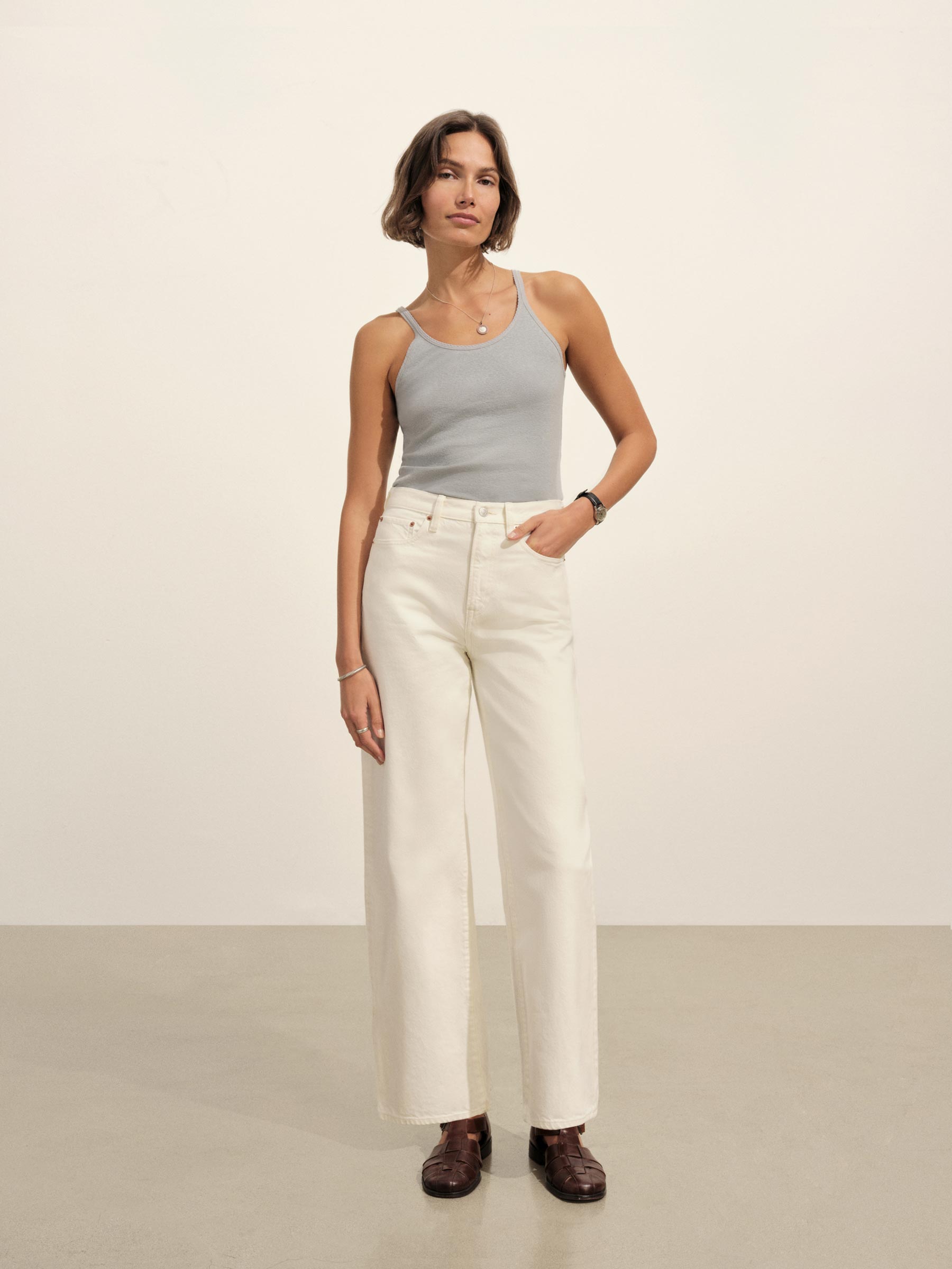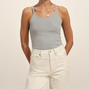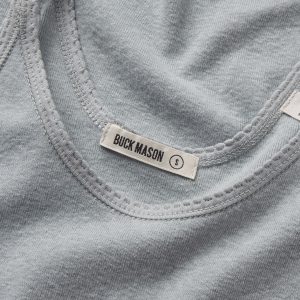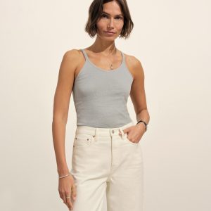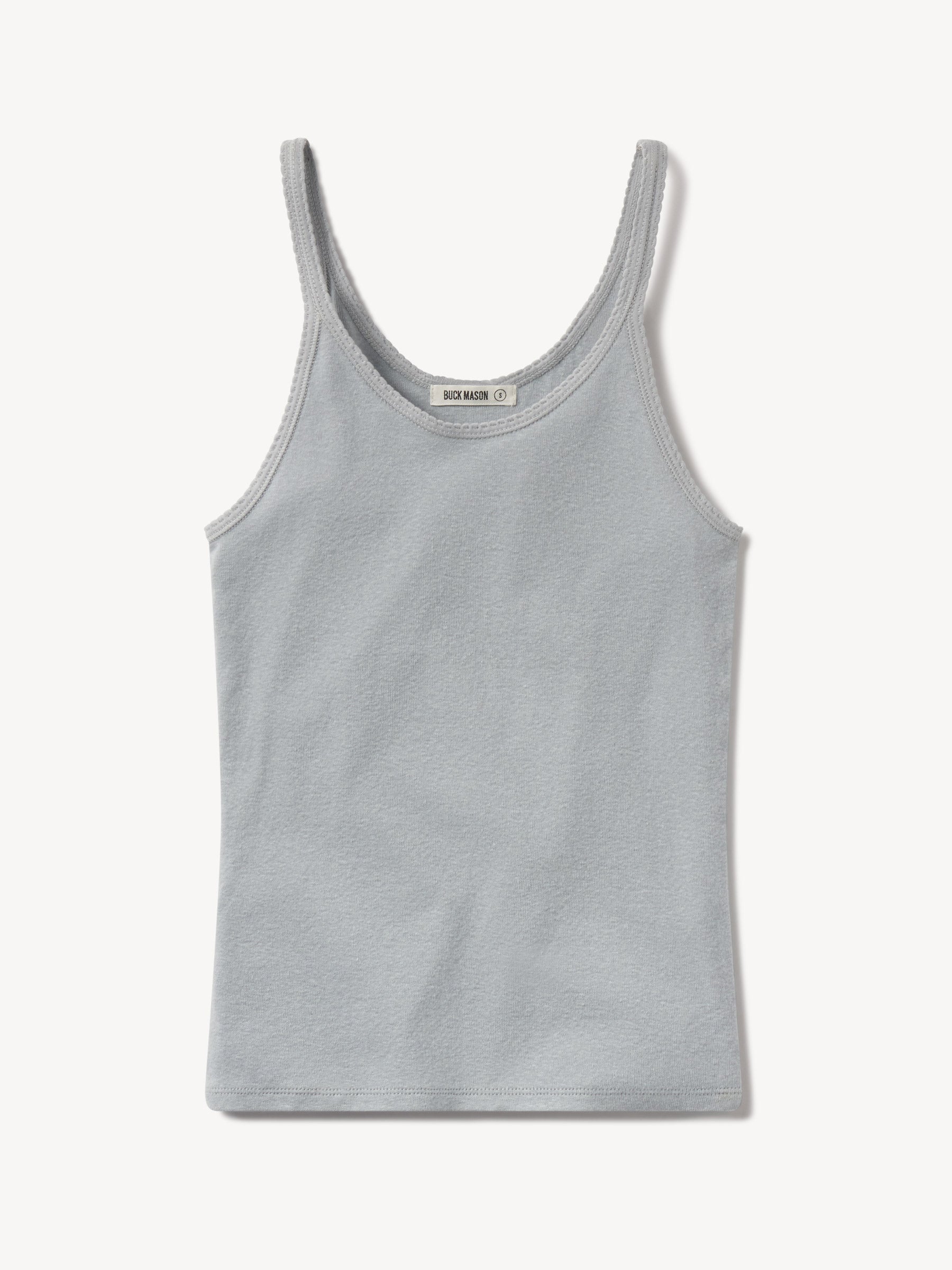 Slim-fit, vintage-inspired scoop tank made from a blend of 60% recycled cotton and 40% cotton. Featuring a combo of jersey fabric and scallop stitch details at the armholes and neckline, it also includes baby snaps for the bra holder.