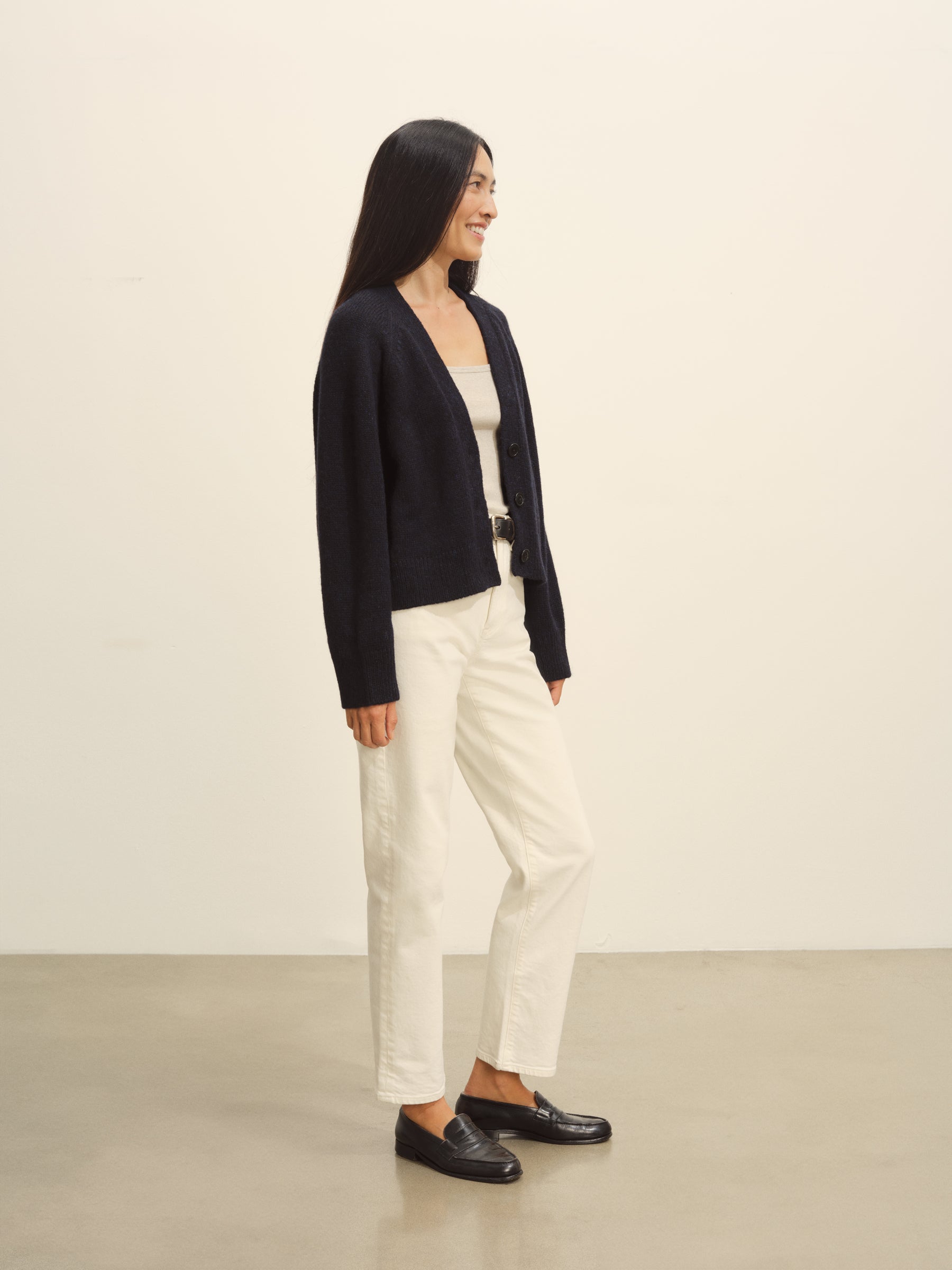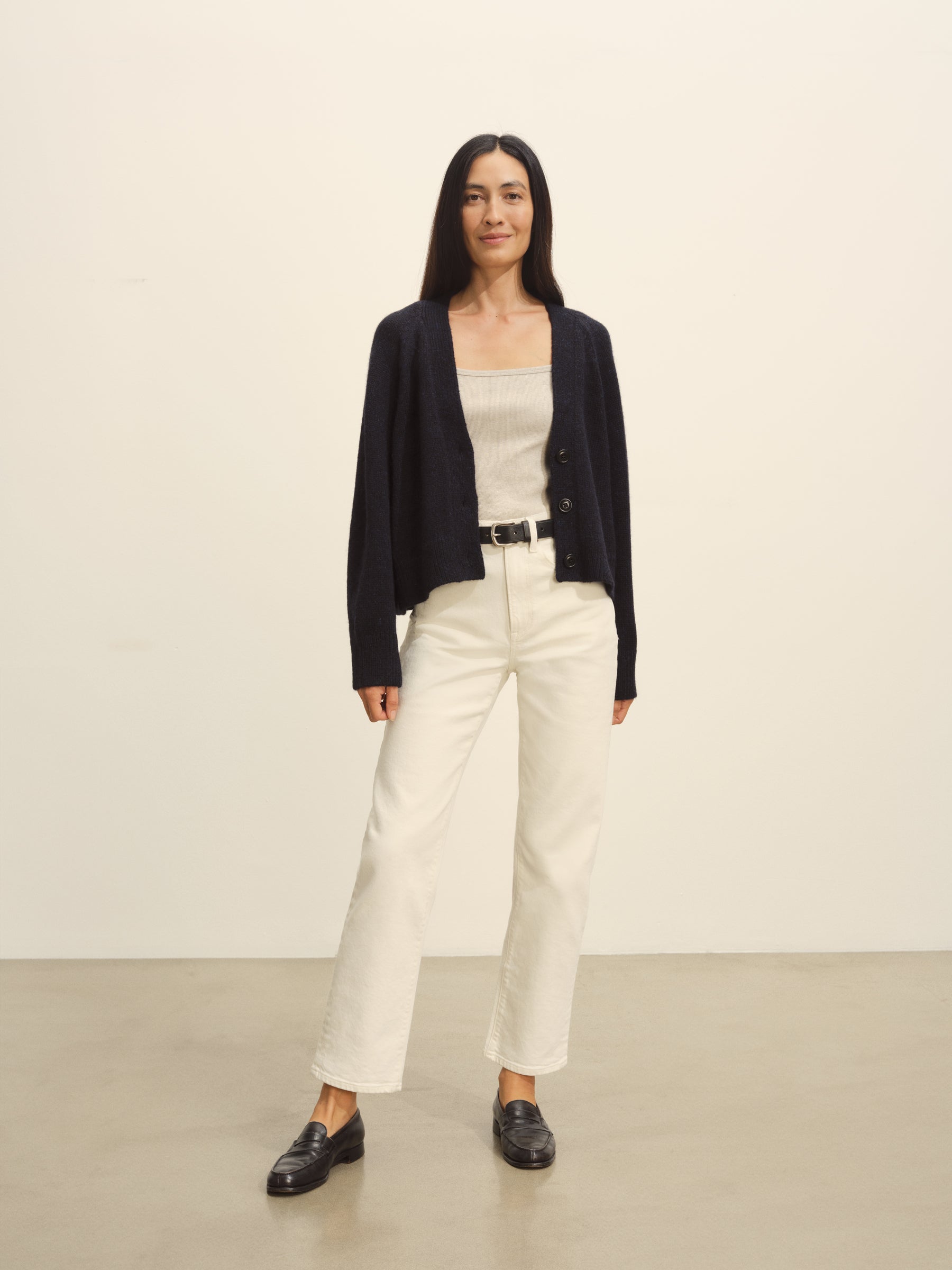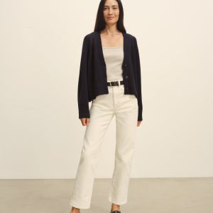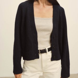 Crafted from a 5-gauge blend of Peruvian alpaca and merino wool, this cardigan has a soft finish and a substantial feel that’s prime for cool-weather outfitting. The boxy, cropped fit is complemented by a classic V-front, a three-button placket, and ribbing at the cuffs and hem.