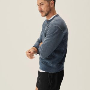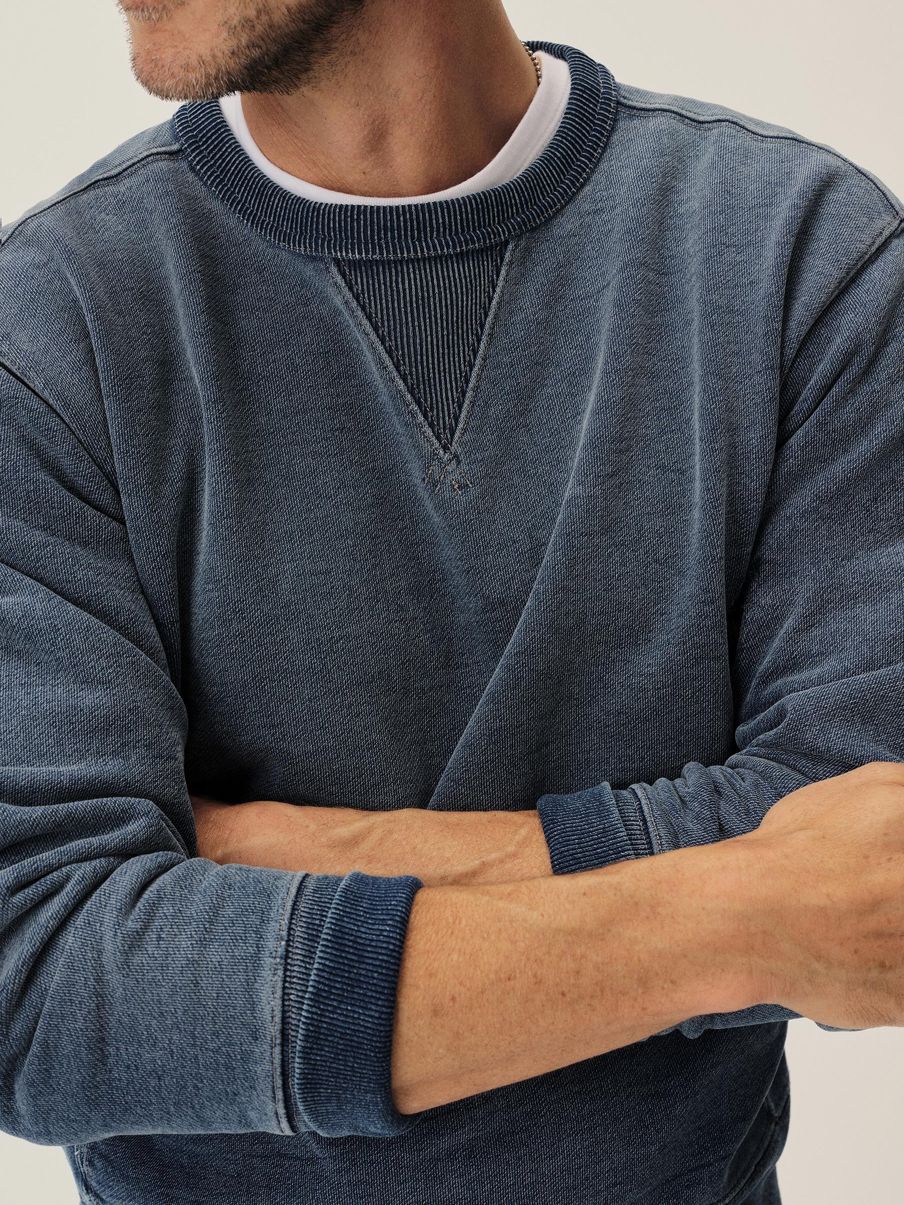 Indigo-Dipped Loopback Double V Crew Sweatshirt