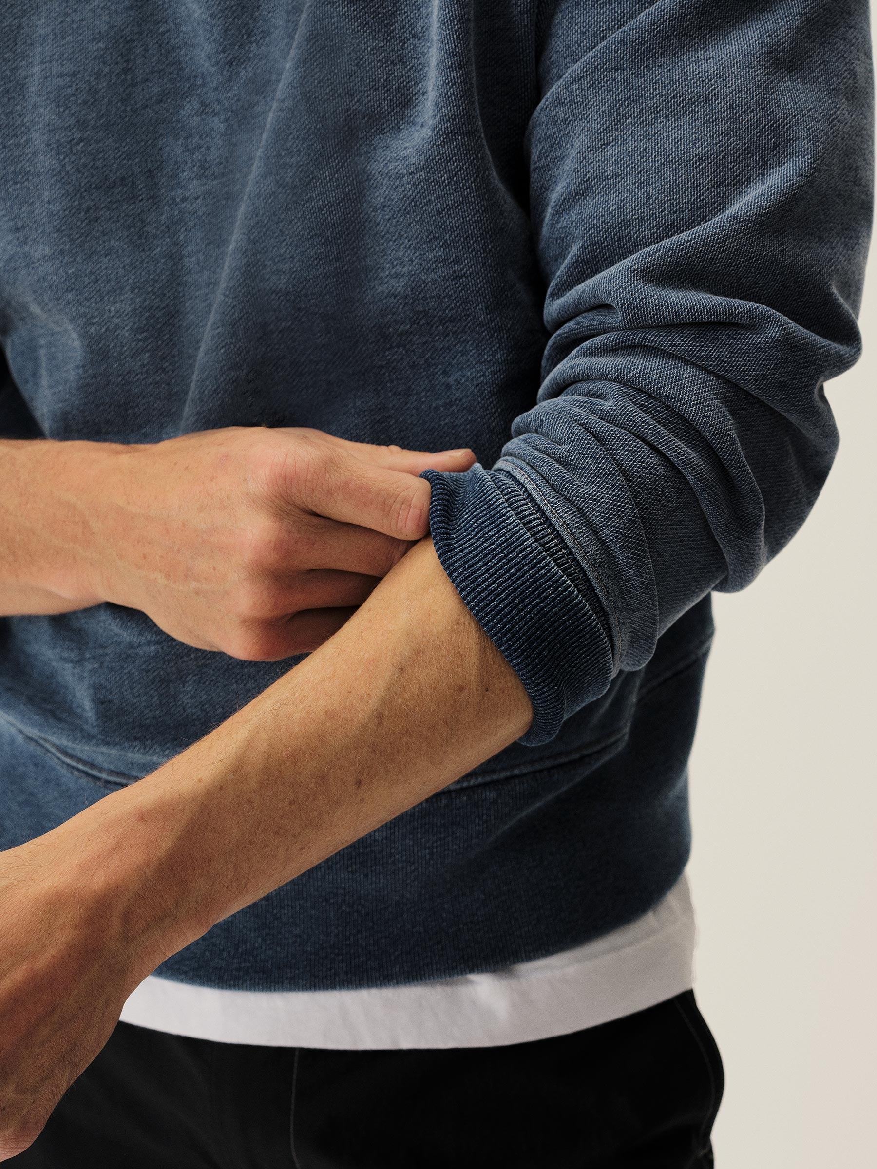 A classic vintage crewneck sweatshirt with the iconic double-V neck gusset opening. Each yarn is dipped dyed in indigo for a deep blue that will fade with wear.
