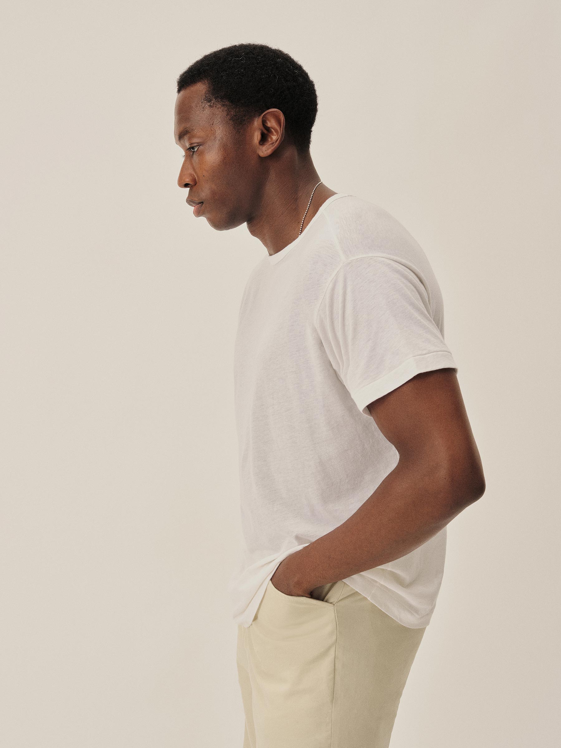 A classic tee knit in Japan from a blend of cotton and cashmere — delivering a refined, ultra-lightweight feel at just 100 GSM. Piece-dyed for rich color. Designed with a slightly longer in length and fuller in the chest for a relaxed, easy fit.