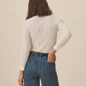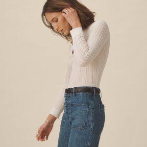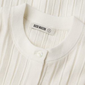 A slim henley crafted from a crepe wool-cotton blend yarn with natural texture and breathability. Designed with a flattering crew-meets-henley neckline, it’s constructed with a delicate pointelle drop-needle stitch throughout the body, functional mother-of-pearl shell buttons, and rib finishes at the cuffs and hem.
