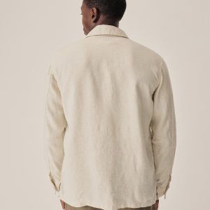 A full fitting fatigue overshirt cut from loose knit mid-weight linen. Details include a vintage-inspired point collar, bellows pocket, and flat-felled double needle seams, which is the same construction we use on our jeans. We sourced larger-than-average flax fibers configured in a loose weave, which gives this shirt a subtle grain and lightweight feel.