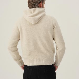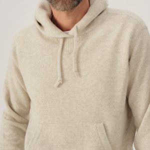 Classic fit hooded sweater in a 9 gauge plaited jersey knit with a merino wool/cashmere face and looped merino wool back. Features a kangaroo pocket and ribbing at the cuffs and hem. Constructed with hand-linked seams for durability.