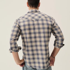 In the spirit of the ol’ Palomino, a classic fit western style shirt made from a springweight blend of cotton and wool, ideal for warm climates. The shirt has all the cowboy details like pearl snaps, a classic pointed yoke, five point pockets with pointed pocket flaps.