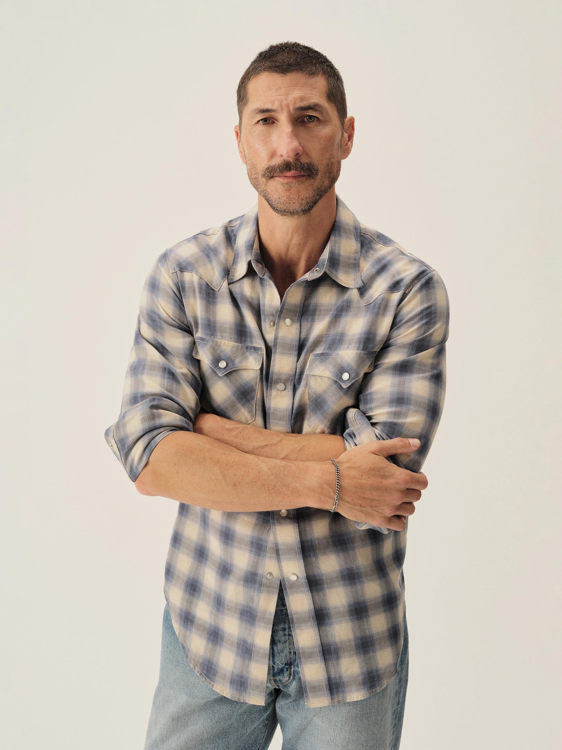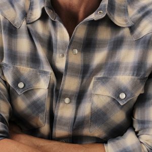 In the spirit of the ol’ Palomino, a classic fit western style shirt made from a springweight blend of cotton and wool, ideal for warm climates. The shirt has all the cowboy details like pearl snaps, a classic pointed yoke, five point pockets with pointed pocket flaps.