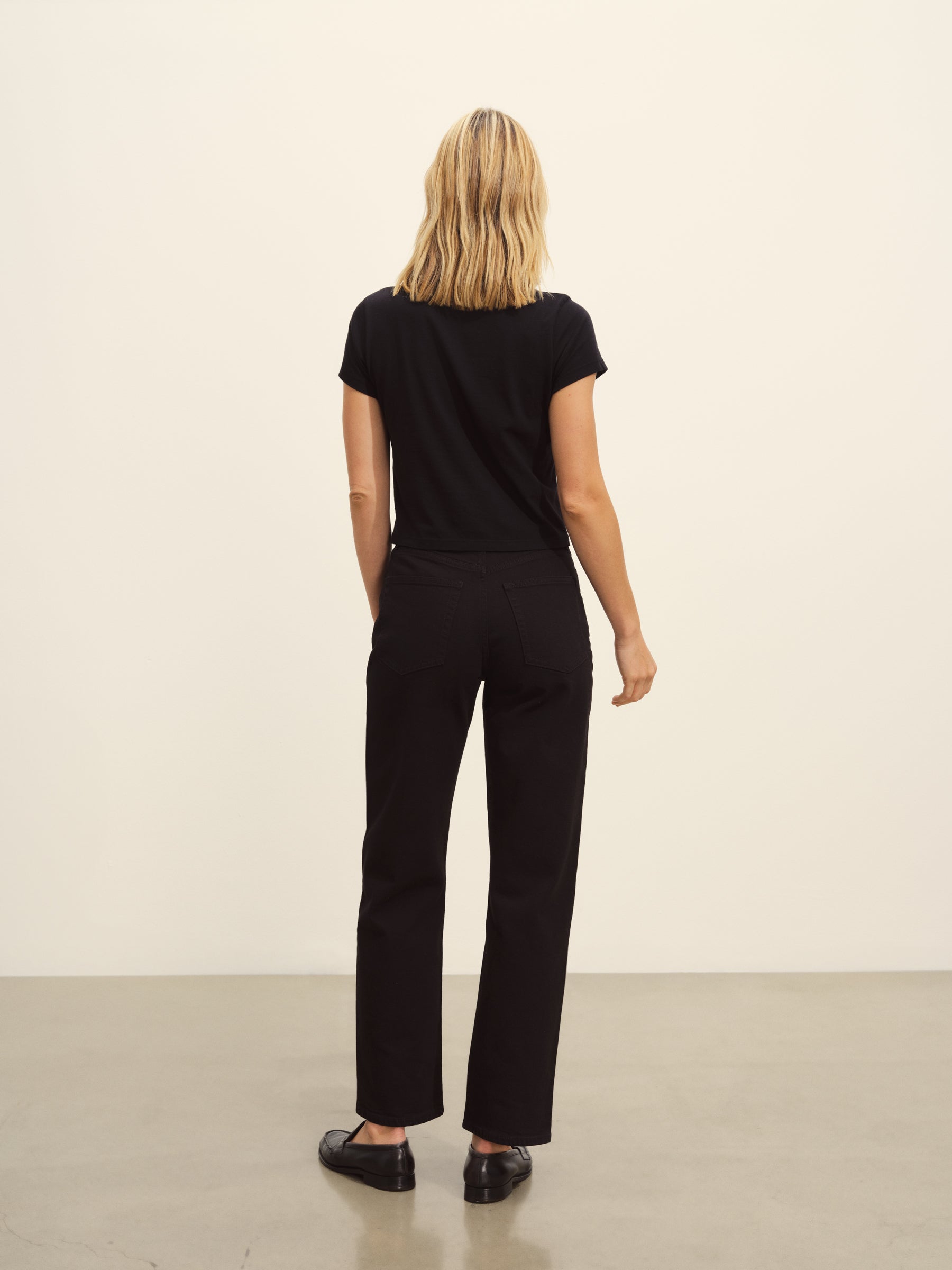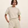 Boxy short sleeve crewneck tee with a straight hem. Cut from 120 GSM Supima cotton. Constructed with rib neck binding and double-needle cover-stitching at the hem. Garment washed for a lived-in feel.