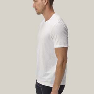 Classic fit short sleeve crewneck with a straight hem. Made at BM Knitting Mills in Mohnton, PA, from USA-grown and milled 140 GSM jersey knit from long-staple Supima cotton with a soft, smooth hand. Garment washed with enzymes and softener for a lived-in feel.
