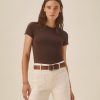 Slim fit short sleeve crewneck tee with a straight hem in 120 GSM jersey, knit from long-staple Supima cotton. Constructed with a durable rib stitch collar and double-needle cover stitch hem. Garment washed with softener for a lived-in feel.