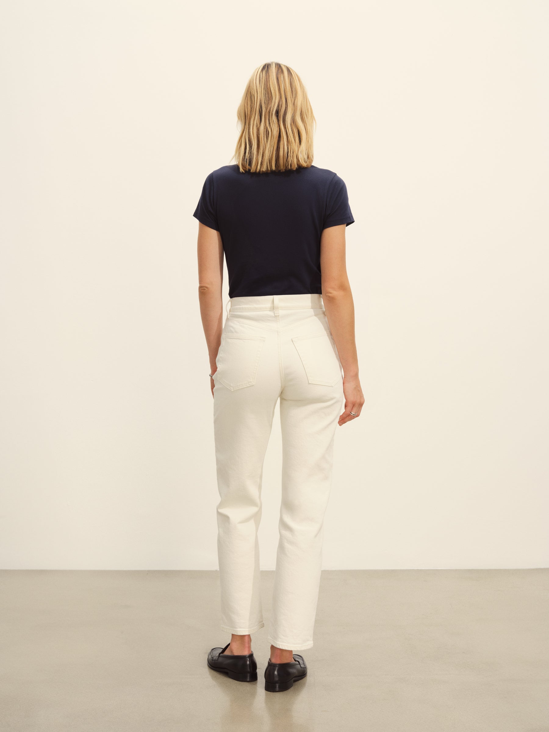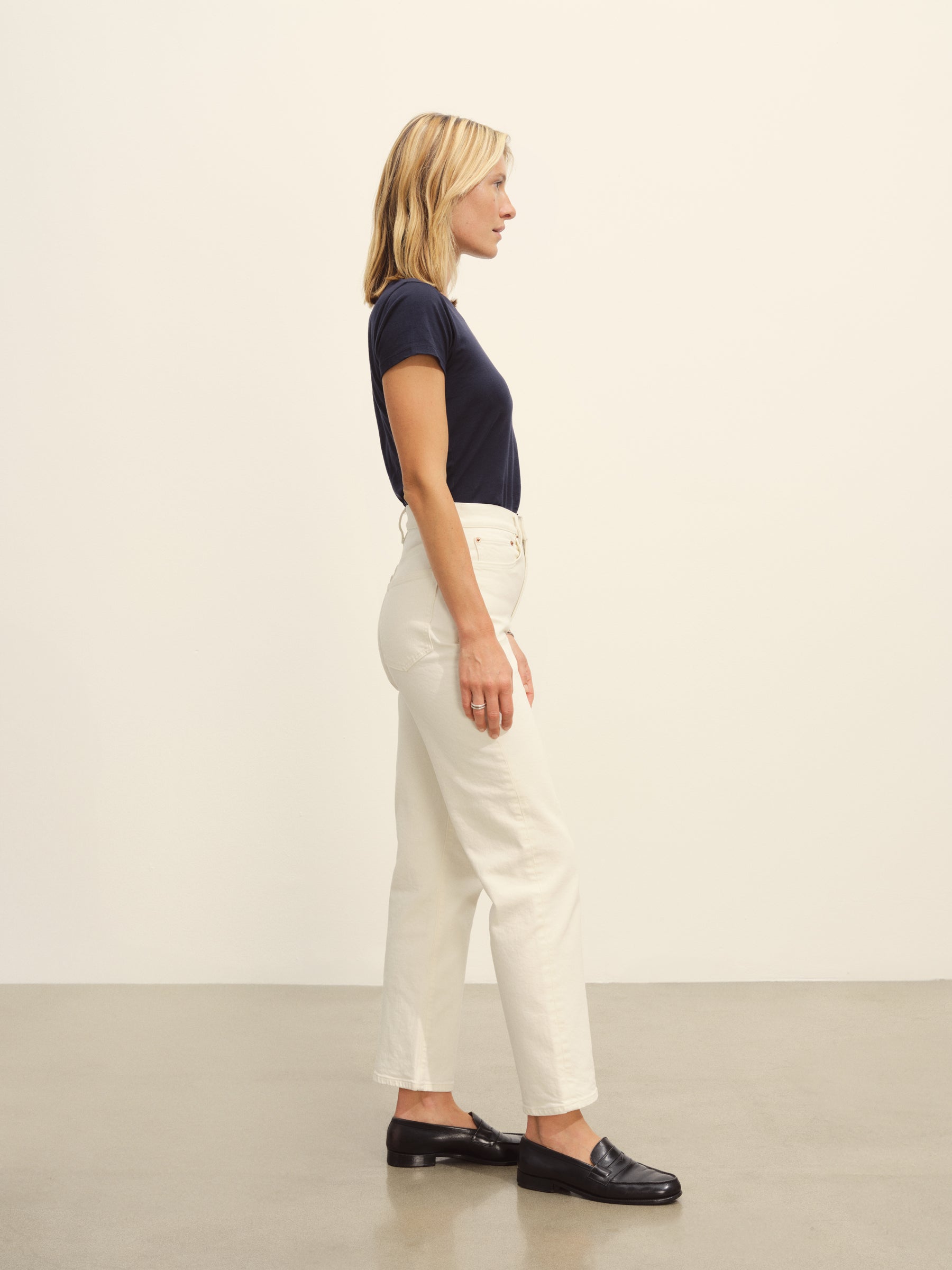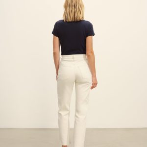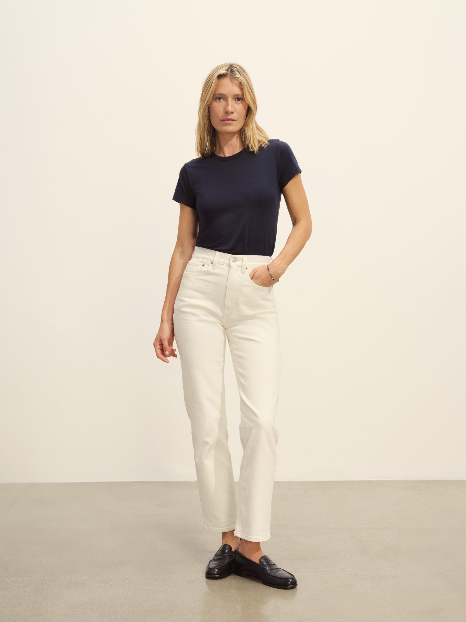 Slim fit short sleeve crewneck tee with a straight hem in 120 GSM jersey, knit from long-staple Supima cotton. Constructed with a durable rib stitch collar and double-needle cover stitch hem. Garment washed with softener for a lived-in feel.