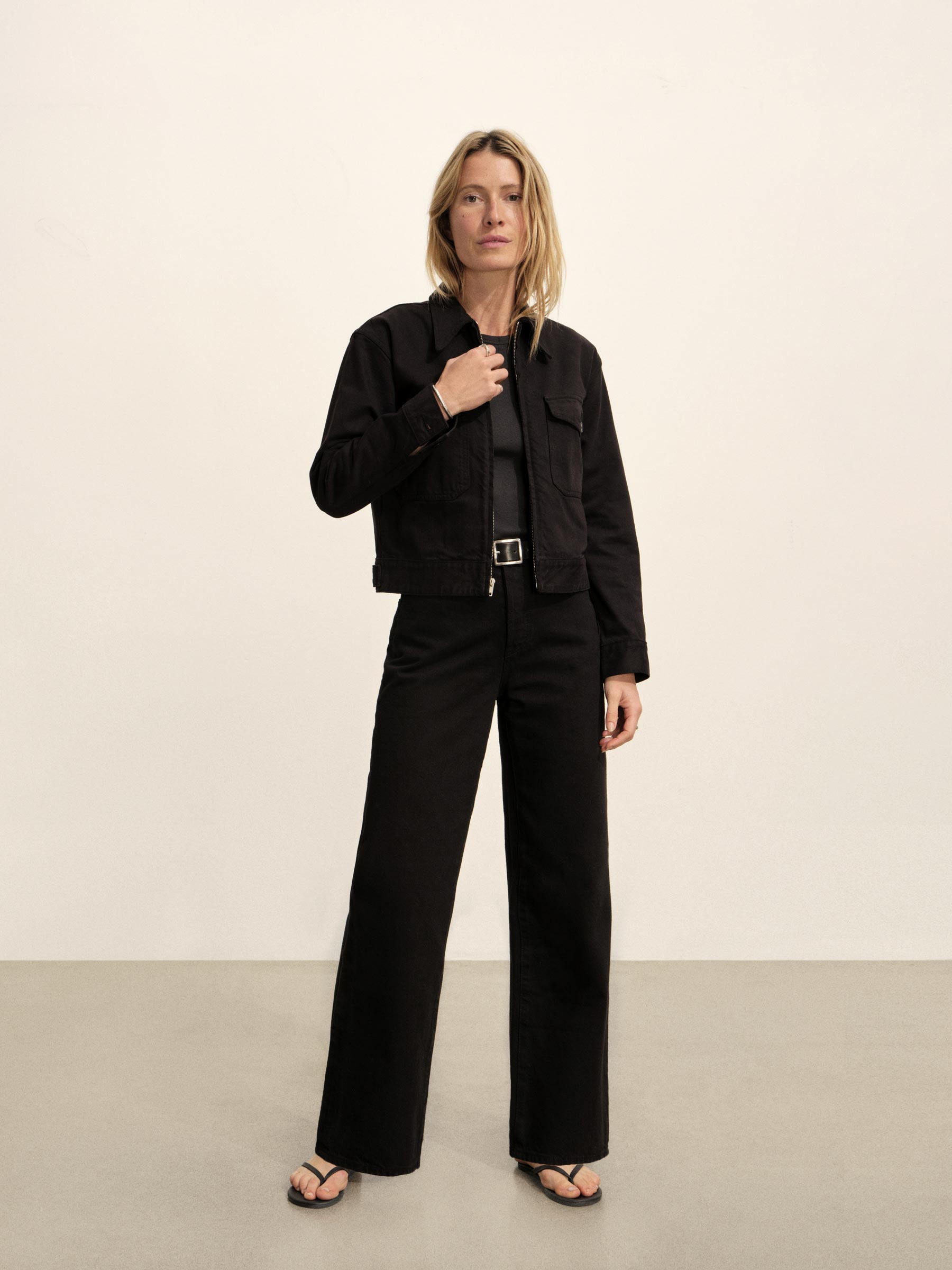 Relaxed utility jacket inspired by vintage mechanic uniforms. Cut from subtly structured 11.4 oz. cotton twill with all of the character of classic denim and a touch of stretch for comfort. Details include a zipper front, chest pockets, and button-through cuffs. Back tabs can be adjusted for a more fitted waist and extra blouson. Garment dyed and washed for a lived-in feel. Pair with the Rider Pant to complete the look.