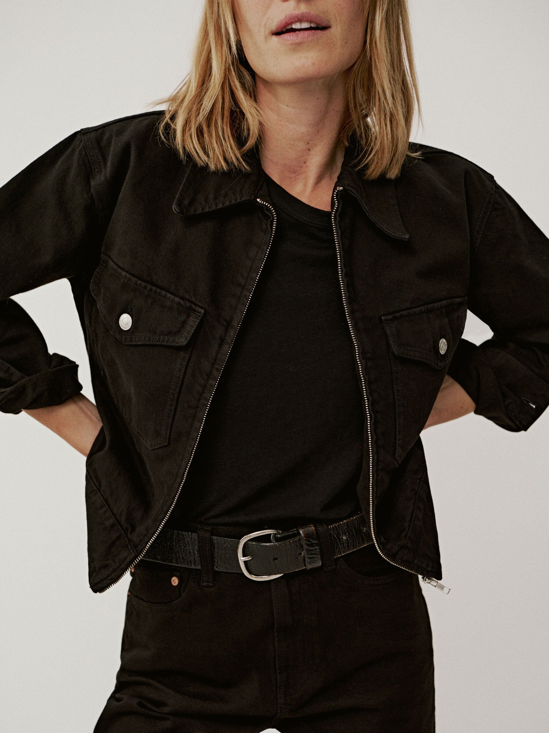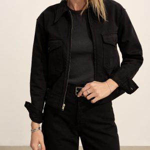 Relaxed utility jacket inspired by vintage mechanic uniforms. Cut from subtly structured 11.4 oz. cotton twill with all of the character of classic denim and a touch of stretch for comfort. Details include a zipper front, chest pockets, and button-through cuffs. Back tabs can be adjusted for a more fitted waist and extra blouson. Garment dyed and washed for a lived-in feel. Pair with the Rider Pant to complete the look.