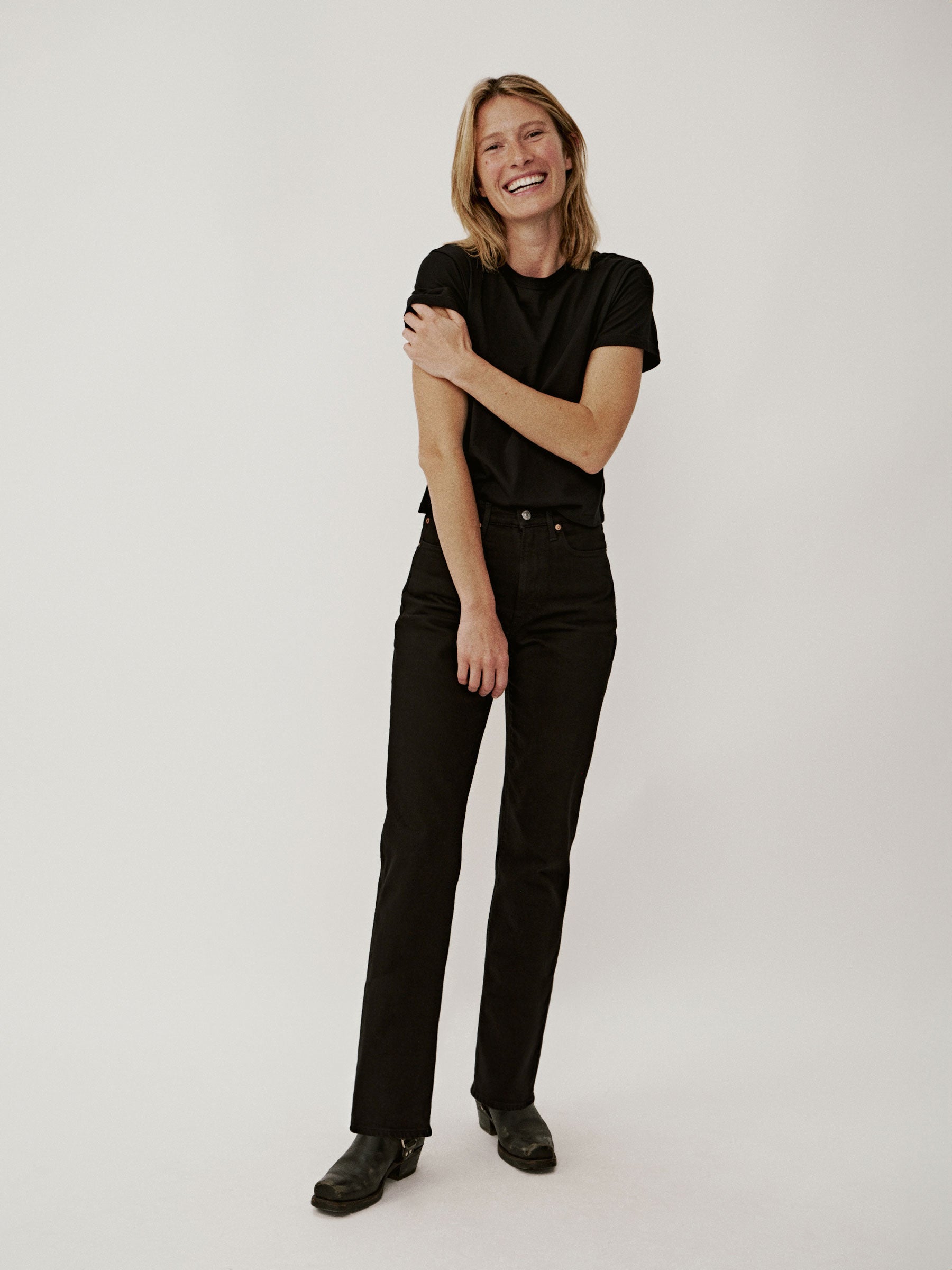 Straight leg, high-waisted pant cut from 12 oz. cotton twill with a touch of stretch for comfort. Inspired by vintage denim, the busted outseam creates a smooth silhouette. Garment dyed and washed with softener for a lived-in feel. Zipper fly. Pair with the Mechanics Jacket to complete the look.