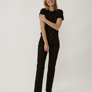 Straight leg, high-waisted pant cut from 12 oz. cotton twill with a touch of stretch for comfort. Inspired by vintage denim, the busted outseam creates a smooth silhouette. Garment dyed and washed with softener for a lived-in feel. Zipper fly. Pair with the Mechanics Jacket to complete the look.