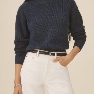 1960s inspired crewneck sweater with an easy, slim fit. Crafted from 7-gauge waffle knit yarn-dyed cotton with a light slub texture, featuring fashioning at the neck and drop-back shoulders as a nod to mid-century.