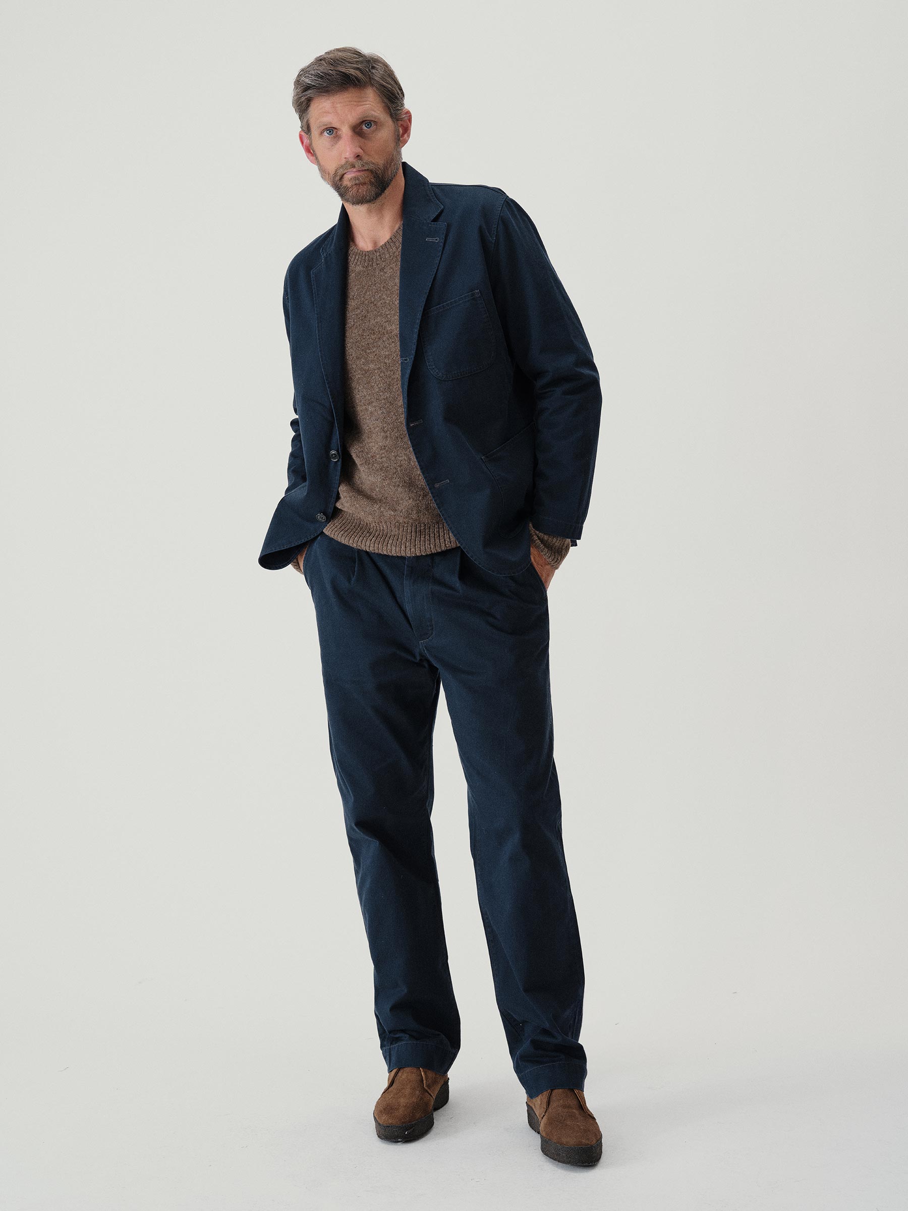 The Carry On Jacket is designed to be casual enough to wear by itself or step up into a full suit with matching trousers. It is made with a classic three-roll, two-button stance with three patch pockets. With no lining or back vent, the jacket is decidedly casual and streamlined. This iteration is made from an 8.9 oz cotton sateen, the same smooth and durable weave used on your favorite vintage military fatigues.