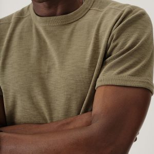 The Sidewinder is inspired by a tee first made a century ago to be worn beneath US military uniforms. When the heat was on, soldiers unbuttoned their top layers, and the tee took on the status we know today: as a garment worn proudly alone. Like the original, ours is crafted from substantial ribbed cotton that wears hard but breathes easy. We cut it for a classic fit that’s not too tight, not too loose.