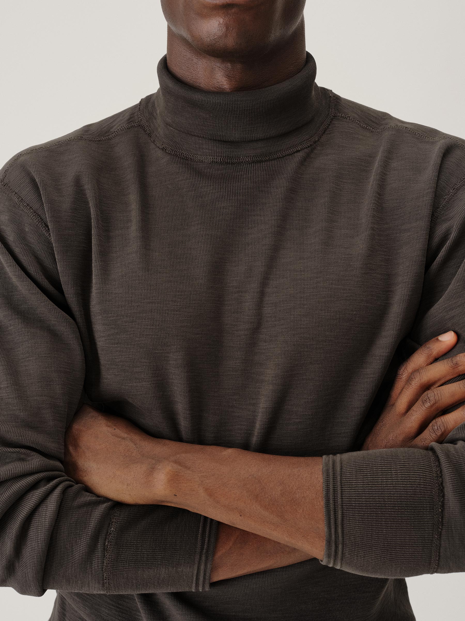 The Sidewinder is inspired by a tee first made a century ago to be worn beneath US military uniforms. When the heat was on, soldiers unbuttoned their layers, and the tee took on the status we know today: as a garment worn proudly alone. Reinterpreted as a turtleneck, this heavyweight piece is crafted in the same breathable ribbed cotton as the original. We kept the dialed-in vintage fit for extra range of motion.