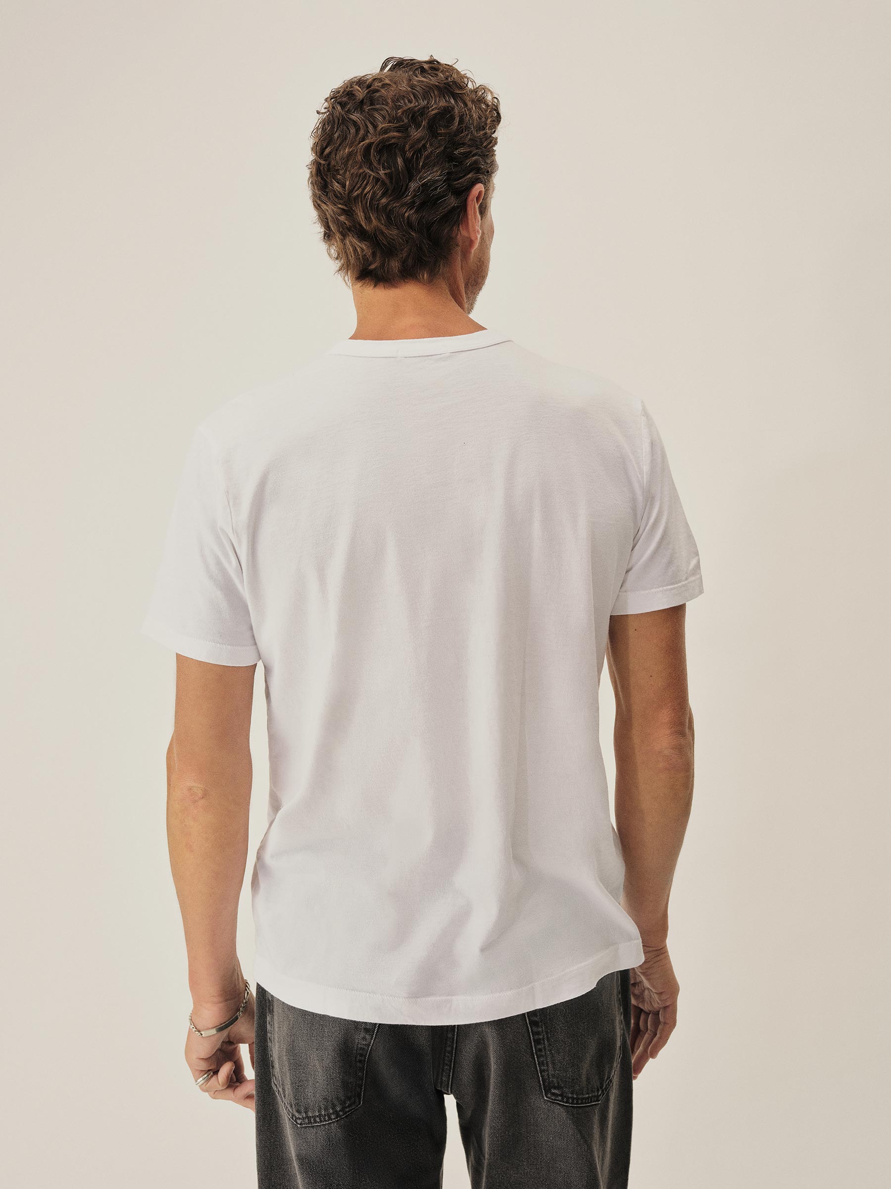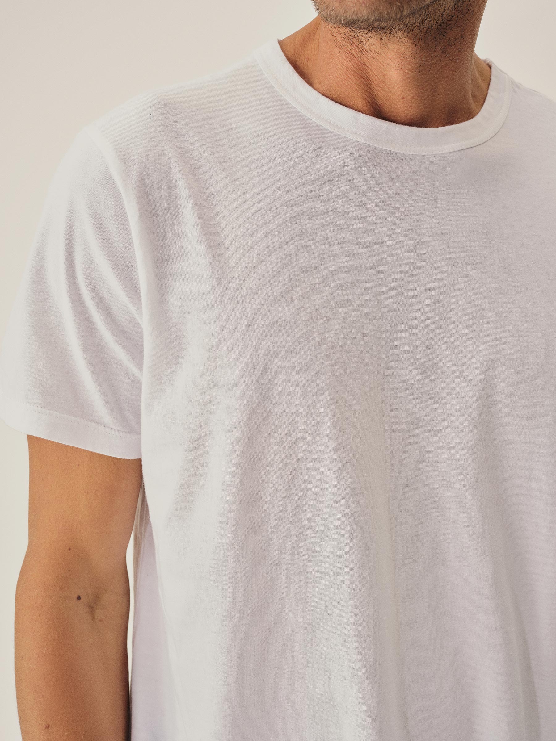 Classic fit short sleeve crewneck tee with a straight hem. Cut from USA-grown 145 GSM cotton jersey with a light slub texture and sewn at BM Knitting Mills in Mohnton, PA. Garment washed with enzymes and softener for a lived-in feel.