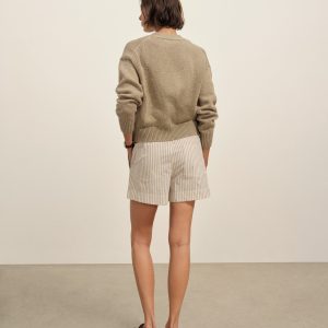 Relaxed cardigan sweater in 5 gauge lofty homespun cotton with a buttery soft finish you’ll love wrapping up in. Features two patch pockets, corozo buttons, drop shoulder, and ribbed cuffs and hem.