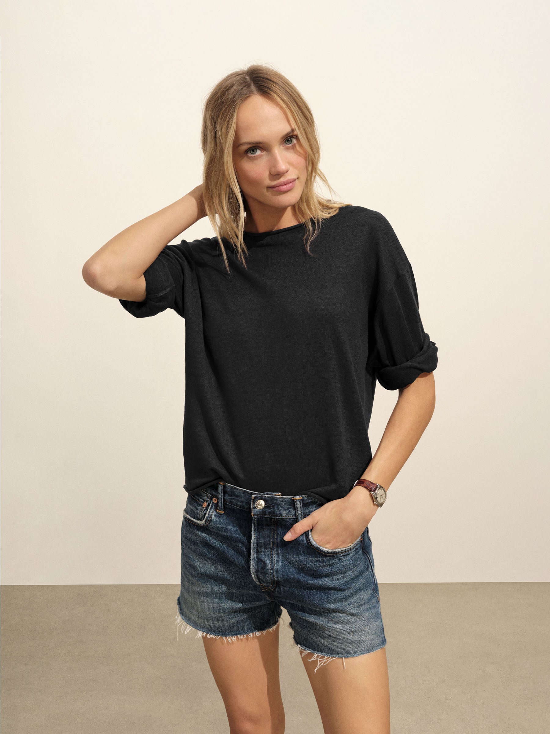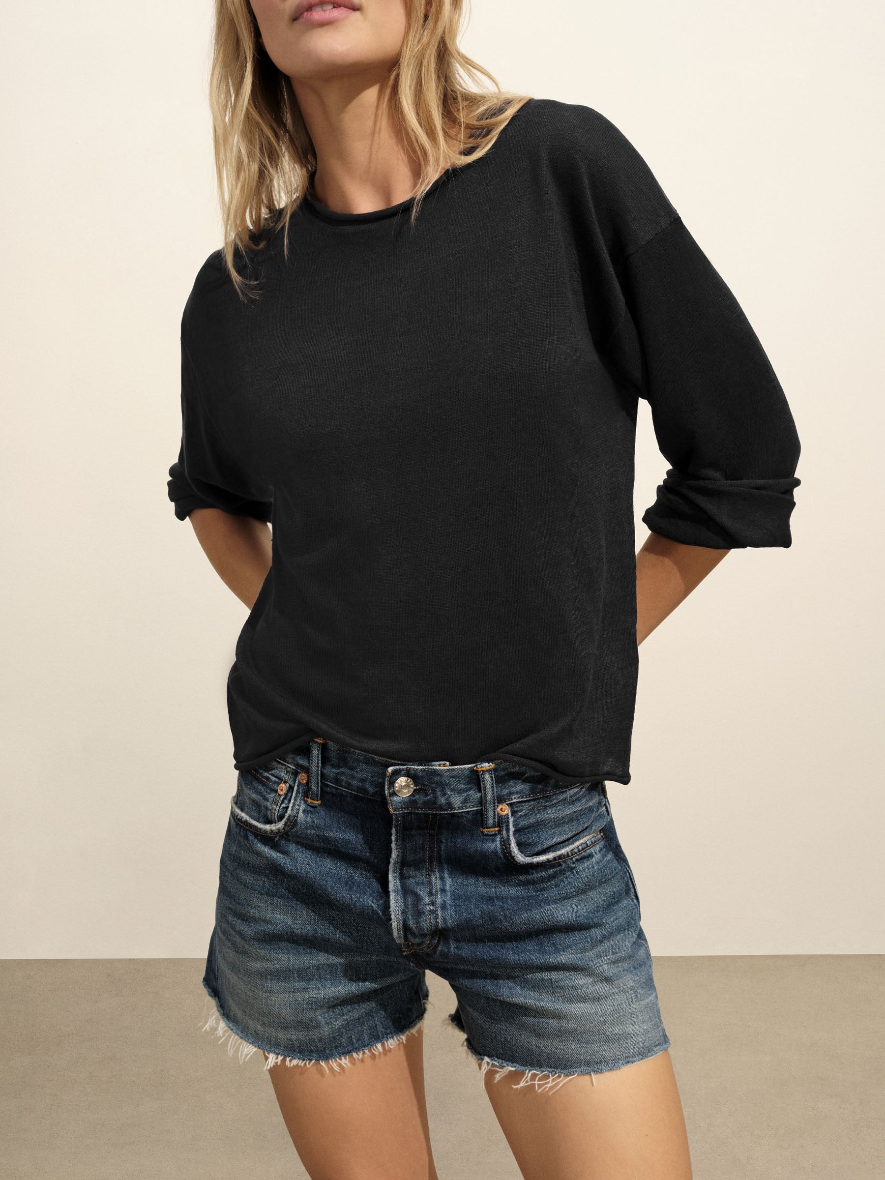 Summer-ready mid-rise cutoffs with a 3.5” inseam, crafted from lightweight indigo-dyed Japanese denim. Featuring metal rivet reinforcements at the pockets and a button fly. Garment-washed for a vintage look and feel.