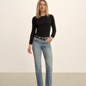 Slim fit ribbed long sleeve tee cut from 295 GSM stretch cotton that holds its shape. 2×2 rib structure—two rows of rib stitch, two rows of jersey stitch—is offset by contrast 1×1 rib at the neck. Constructed with coverstitching throughout and flatlock stitching at the side seams. Garment washed for a lived-in feel.