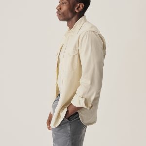 Inspired by a 1940s workshirt from our archives, this is the quintessential midcentury American workshirt. It has a classic fit, two flap chest pockets, and a curved hem. It is cut from a sturdy midweight cotton twill that will soften with every wear. Washed for a lived-in feel.
