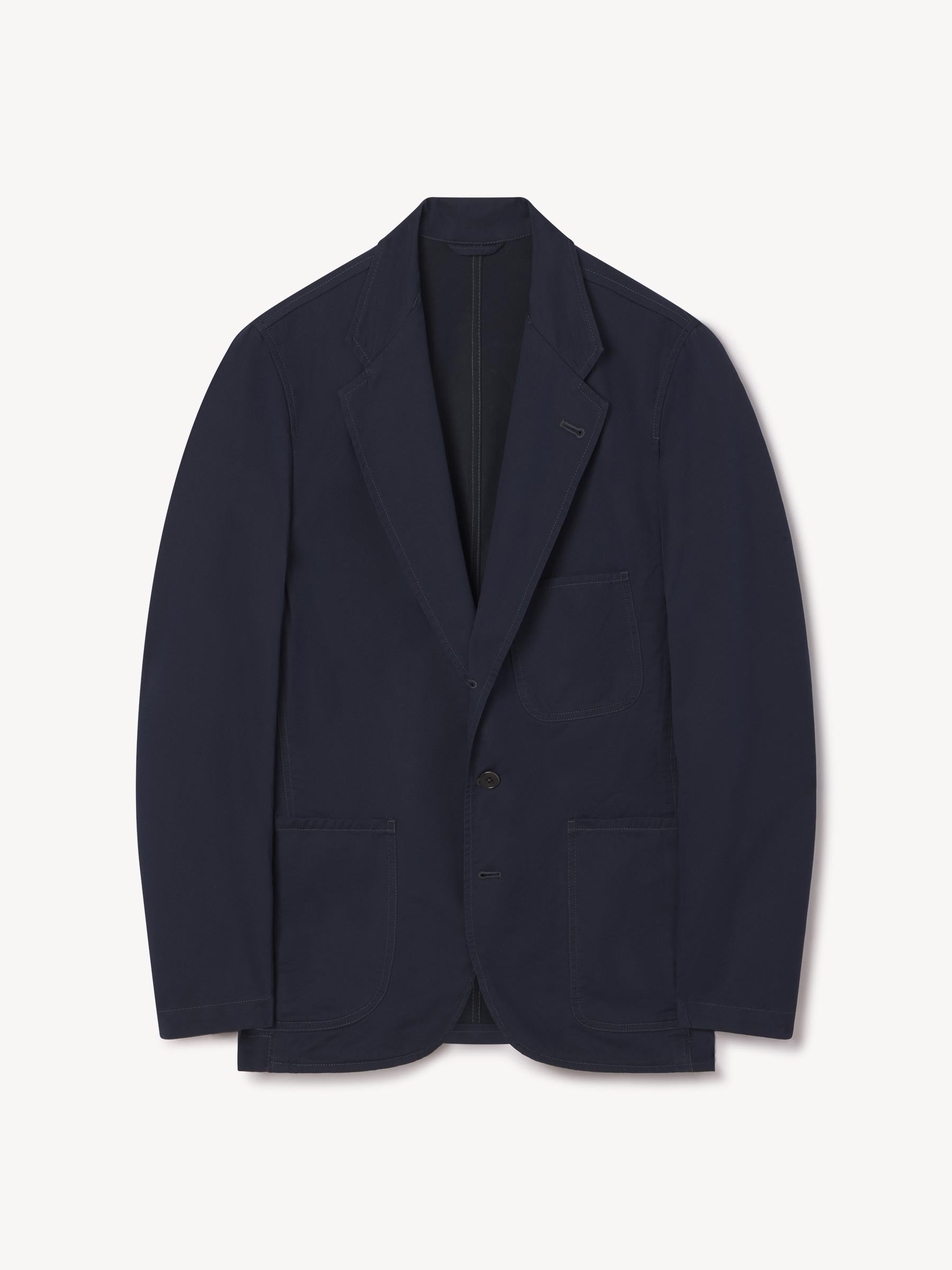 Tailored 3-roll-2 button blazer inspired by timeless, vintage suiting. This iteration is made from a breathable, summerweight cotton and Tencel blend with a smooth, lightweight hand feel. Details include three patch pockets, two internal welt pockets, and a notched lapel. We left it unlined and omitted the back vent and cuff buttons for a casual, streamlined look. Constructed with hand-linked seams.