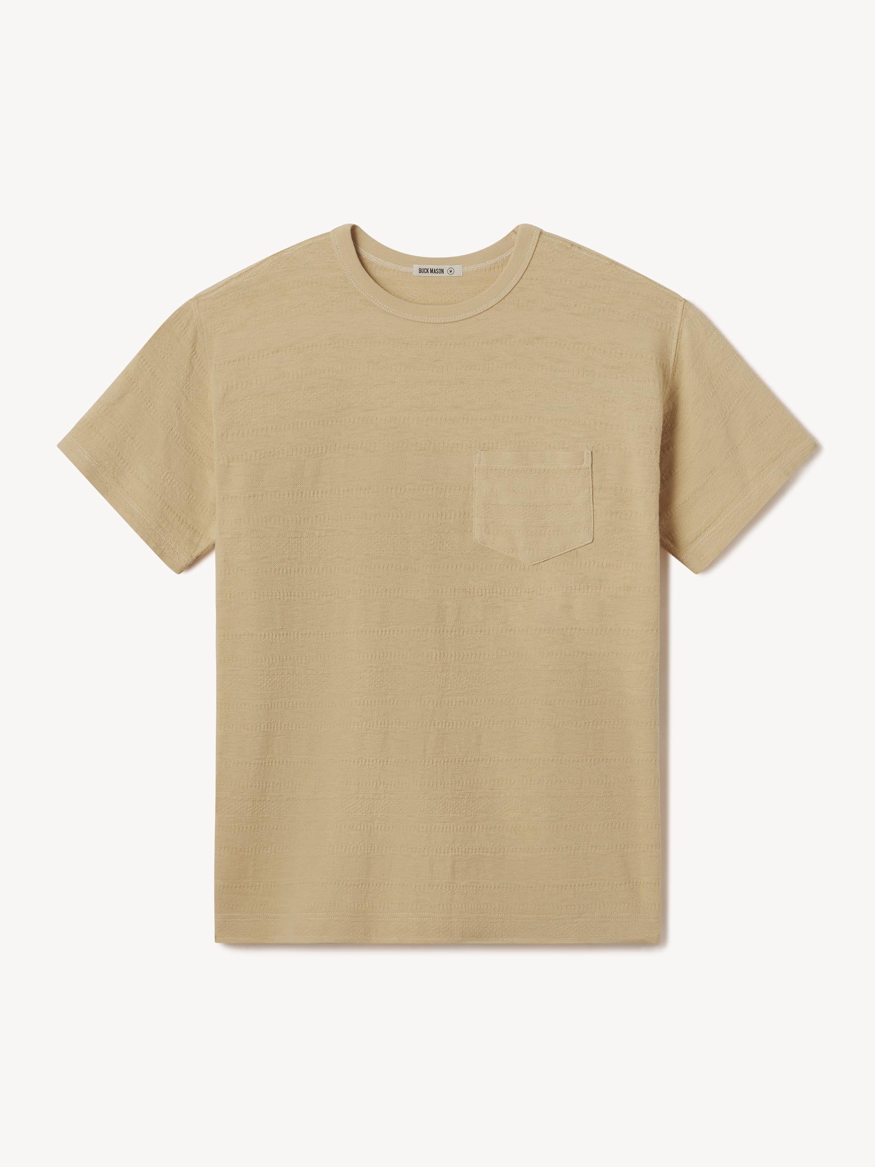 Classic fit short sleeve crewneck tee with a straight hem and patch chest pocket. Cut from a midweight cotton with tonal jacquard patterning. Garment washed for a lived-in feel.