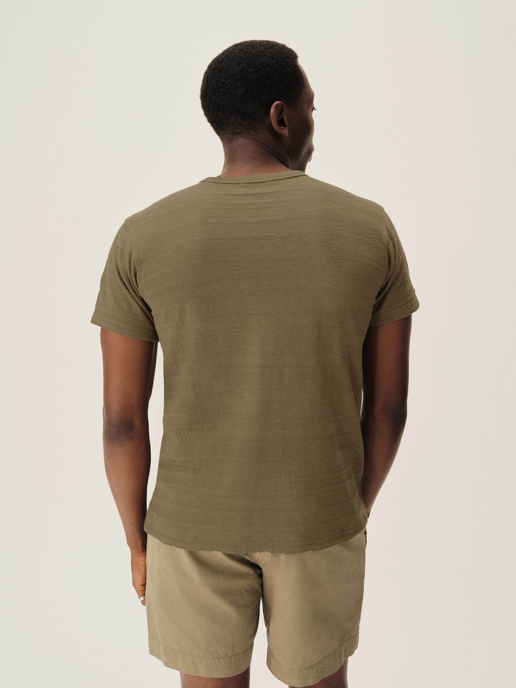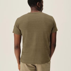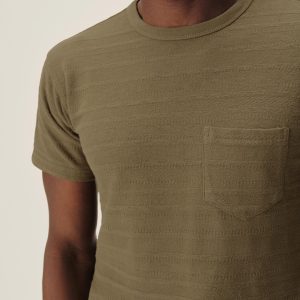 Classic fit short sleeve crewneck tee with a straight hem and patch chest pocket. Cut from a midweight cotton with tonal jacquard patterning. Garment washed for a lived-in feel.