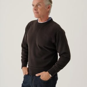 A midcentury-inspired crewneck sweatshirt made from plush, not-too-heavy, not-too-light, welterweight French terry. Features a “V” detailing at the front and back neck opening that was commonly found on sweatshirts from the 1940s and 50s.