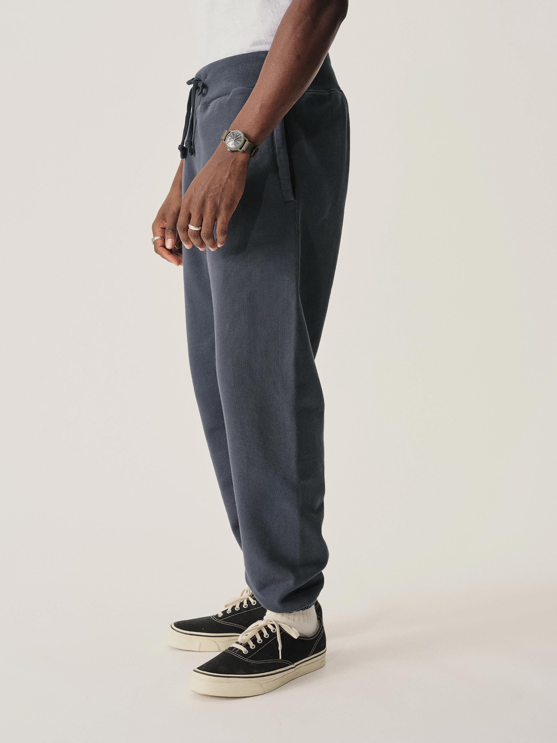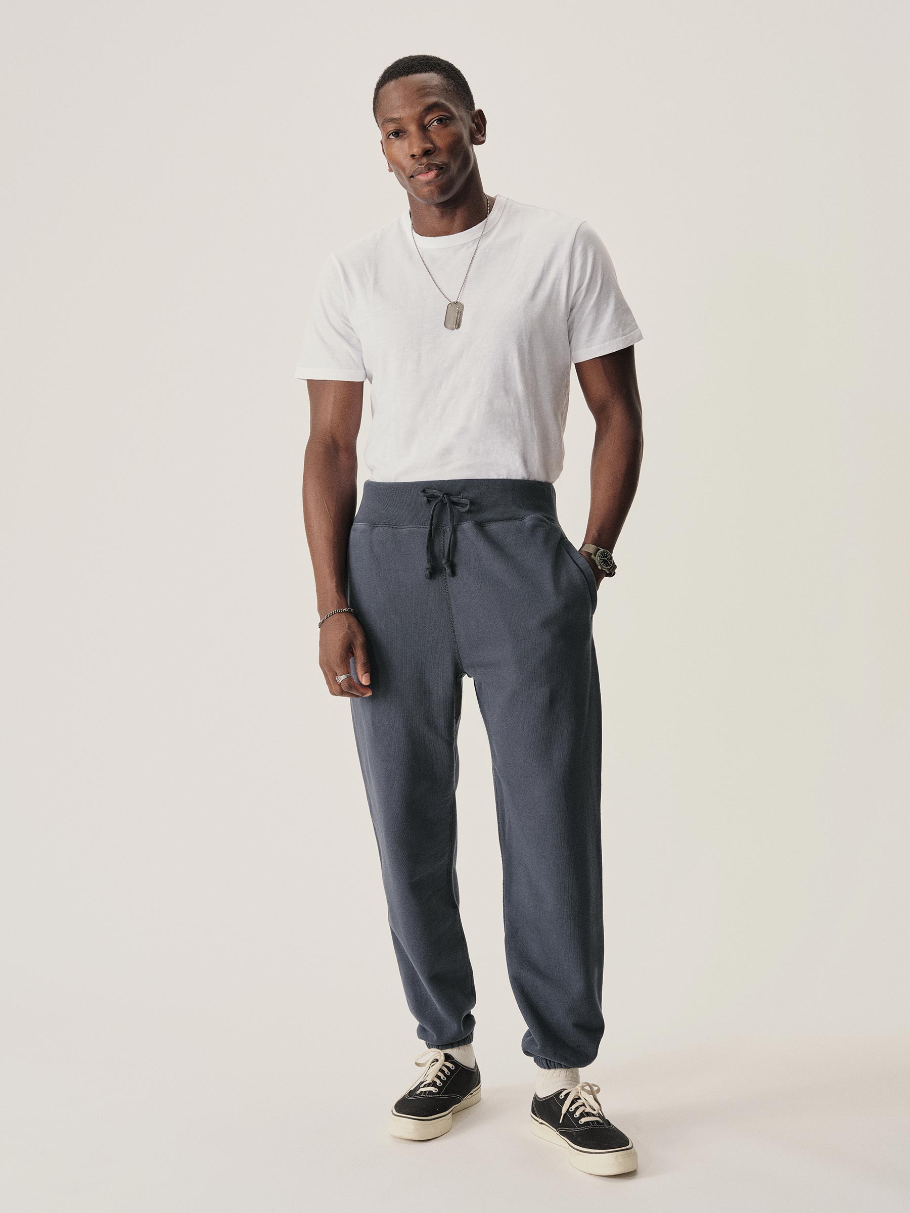 A 1940s-inspired sweatpant made from plush, not-too-heavy, not-too-light, welterweight French terry. Features a wide rib waistband and drawcord waist closure.
